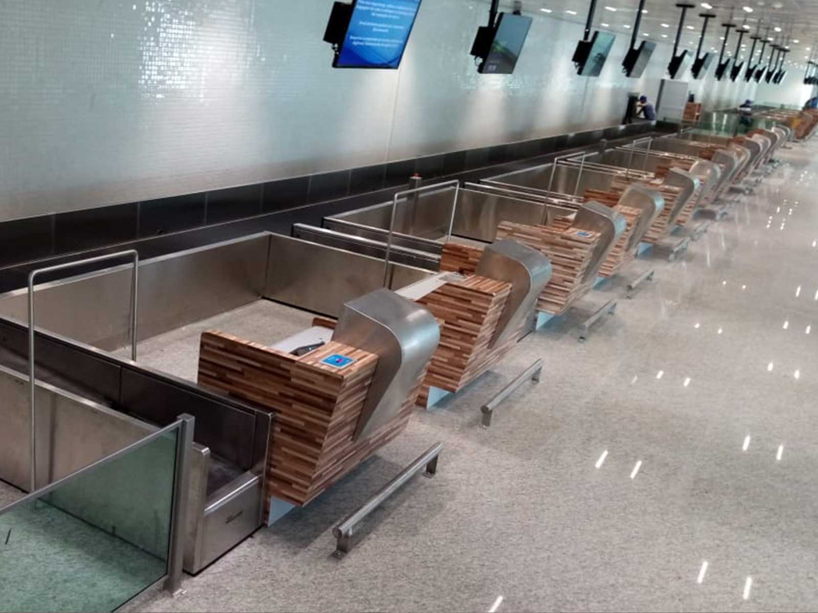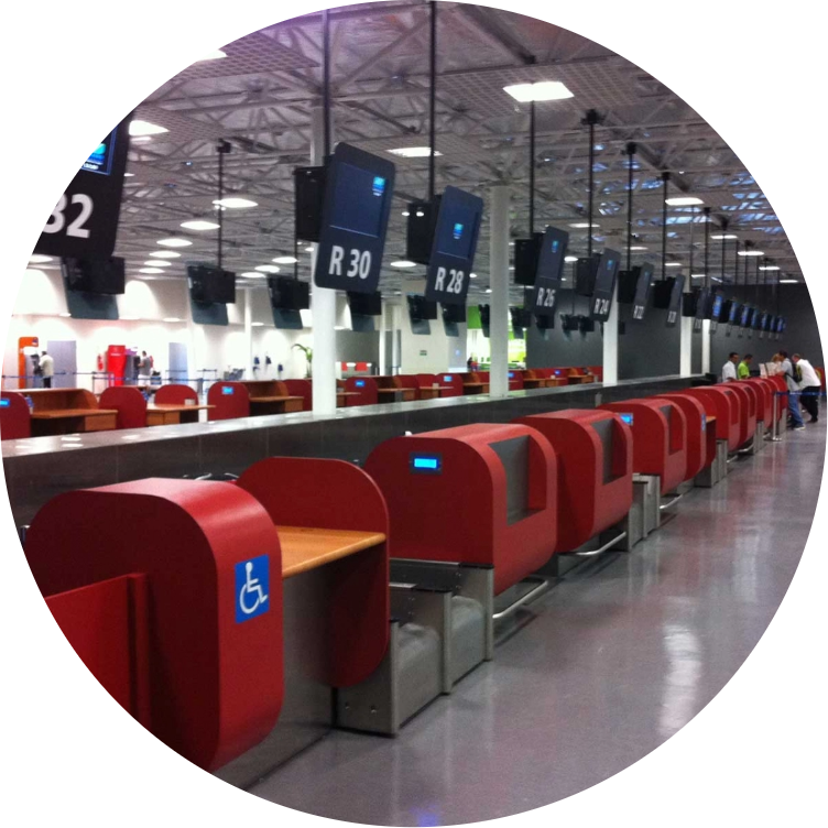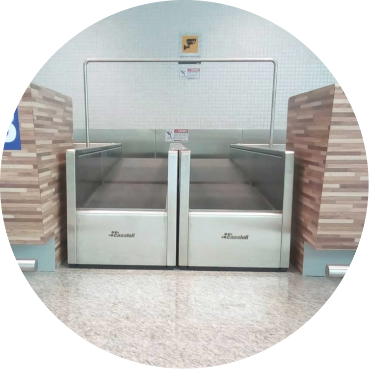 Os sistemas de check-in da Cassioli permitem acelerar as operações de entrega das bagagens dos passageiros no aeroporto e transportá-las de maneira rápida e pontual para o porão da aeronave através dos transportadores automáticos. A escolha meticulosa dos materiais e a produção cuidadosa de cada peça determinam um alto nível de qualidade das estações de pesagem e transporte. O design moderno da estrutura inclui um amplo uso de aço inoxidável que, juntamente com o funcionamento particularmente silencioso do dispositivo, torna a estação adequada aos halls mais modernos e tecnológicos dos aeroportos.
