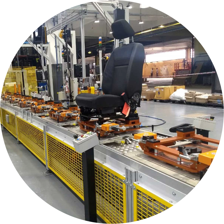 Graças aos seus muitos anos de experiência no campo da automação e manipulação industrial, a Cassioli é capaz de produzir linhas completas para a montagem de assentos de carros.