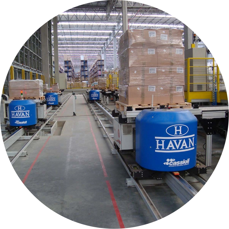 As baías de picking da Cassioli com shuttles automáticos RGV (Rail Guided Vehicles) representam a solução de picking ideal de acordo com a abordagem “materiais para operadores” (Goods to man). A fase de sorting precede a real fase de retirada: as unidades de carga a partir das quais a retirada é realizada são classificadas automaticamente nas estações fixas de picking por meio de um sistema de transportadores RGV que se deslocam ao longo de um circuito com anel. Cada ilha de picking pode ser associada com uma ou mais ordens durante a fase de conclusão. O sistema RGV também pode realizar a recuperação da unidade de expedição e subsequente manipulação para a área de carga.
