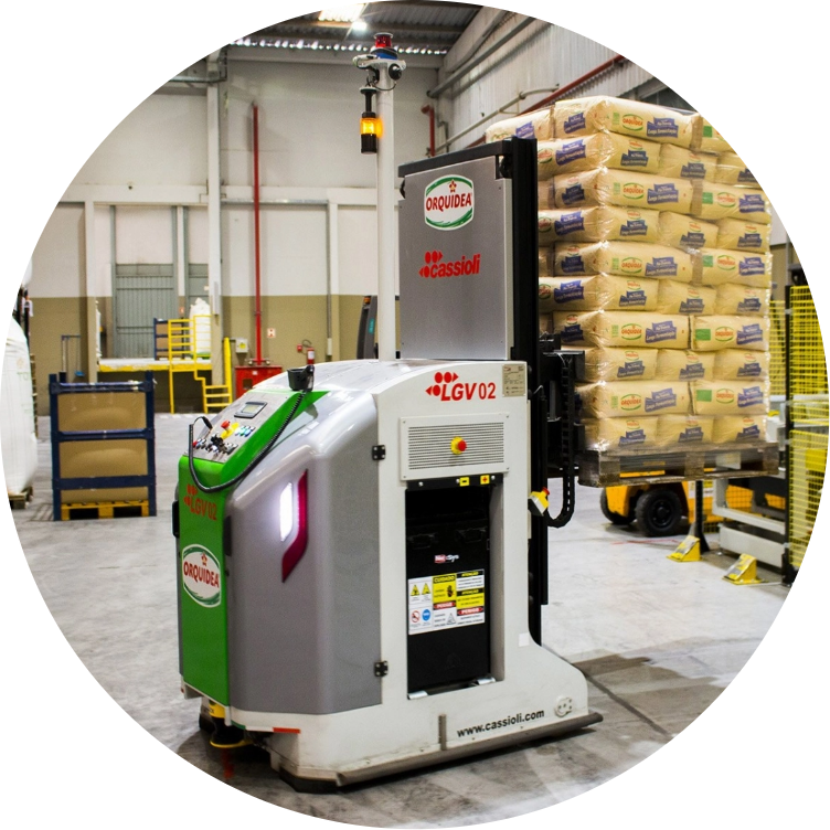 A Cassioli projeta e fabrica veículos inovadores guiados automaticamente capazes de melhorar significativamente a eficiência e a flexibilidade da intralogística da empresa. Os veículos automáticos da Cassioli são sistemas de manipulação de alto nível tecnológico, projetados para múltiplos setores e fases de produção.
