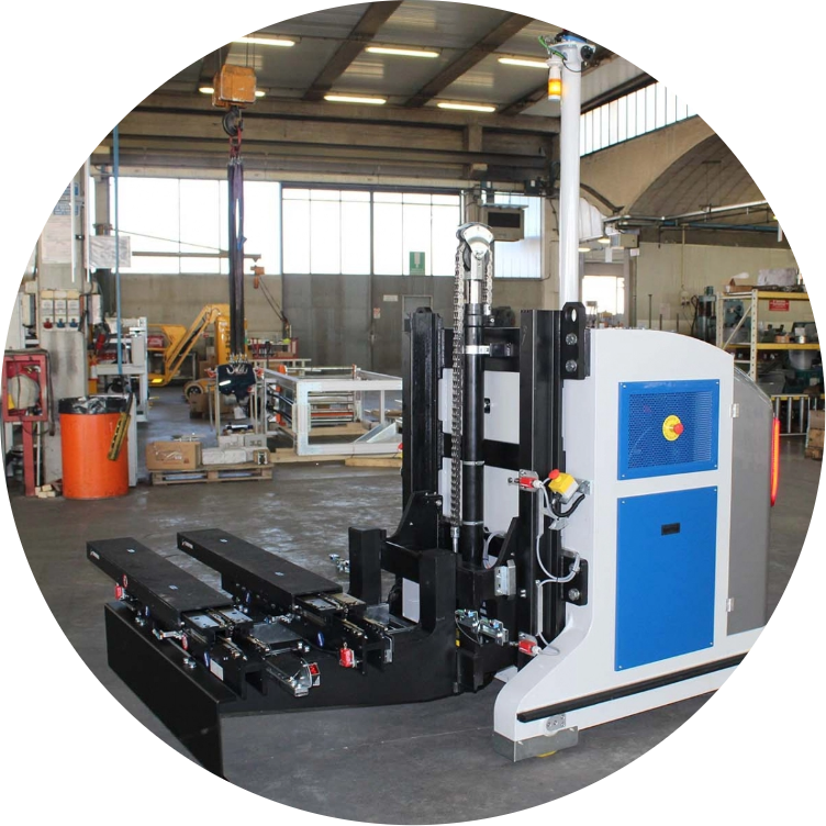 Este tipo particular de AGV foi projetado para o transporte de painéis de madeira. A configuração especial em níveis do AGV permite transportar vários painéis ao mesmo tempo, permitindo processos mais rápidos e uma menor ocupação de espaço.