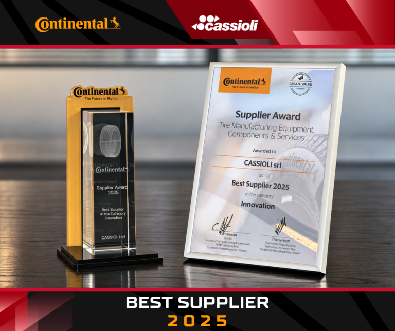 Um novo reconhecimento internacional confirma o papel da Cassioli entre os parceiros tecnológicos de referência para a automação da indústria global de pneus. A Cassioli conquistou um novo e prestigiado reconhecimento da Continental no âmbito do Supplier Award 2025, adjudicando-se o título de Best Supplier na categoria “Innovation”.O prémio celebra a capacidade da Cassioli de desenvolver soluções avançadas para a automação no setor de Pneus (Tire), distinguindo-se pela visão estratégica,