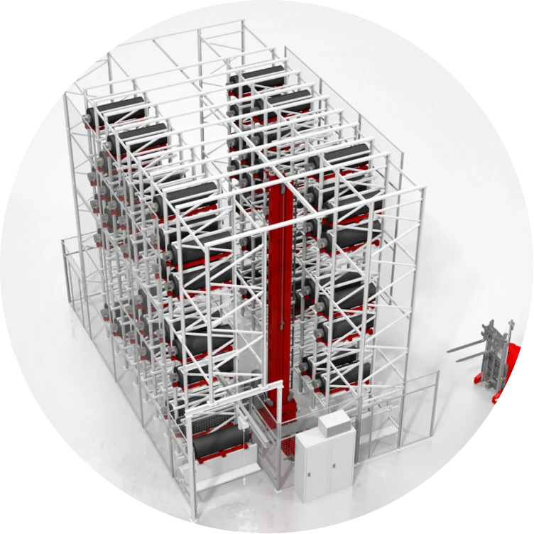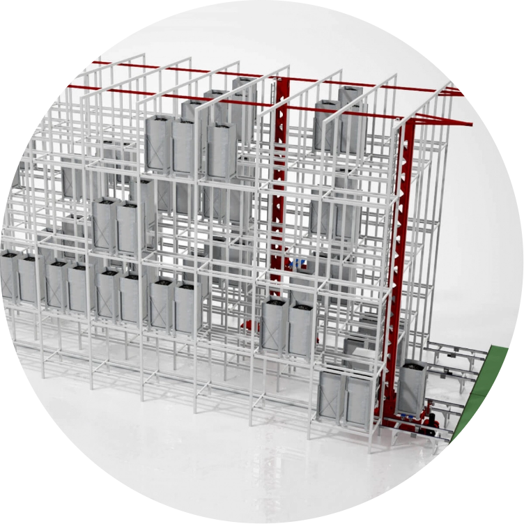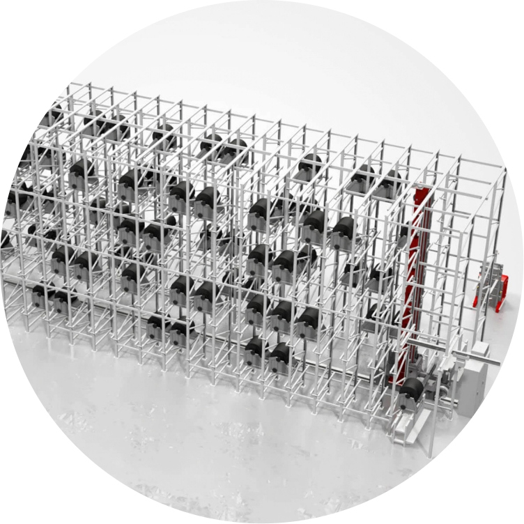 Os sistemas da Cassioli também são projetados para o manuseio e armazenamento de cassetes para a produção de pneus. O armazém automatizado de cassetes da Cassioli garante baixos custos operacionais e acesso rápido, evitando tempos de espera durante a produção e apoiando um fluxo contínuo de trabalho. Assim como nos outros armazéns automatizados, um ou mais guindastes empilhadores farão o manuseio, o armazenamento e a recuperação das cassetes.