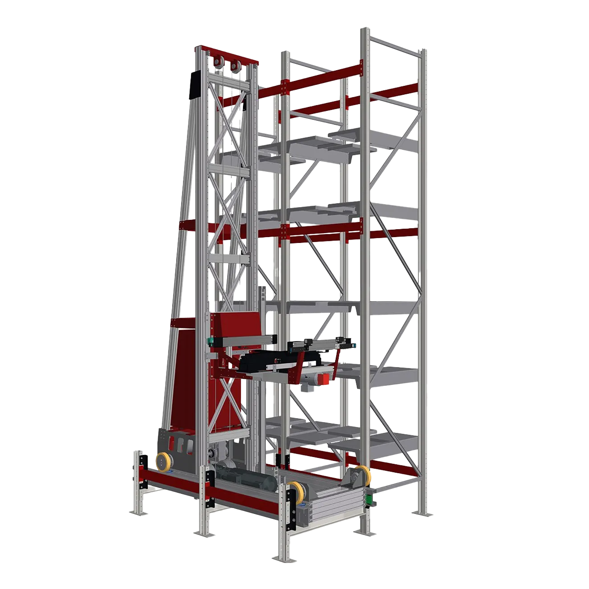 O novo sistema de armazenagem, chamado Multi-Level Shuttle (MLS), é formado por mini transelevadores de dimensões reduzidas, mas de alto desempenho, que podem ser sobrepostos no interior do mesmo corredor, aumentando assim o rendimento do sistema. O MLS da Cassioli foi projetado para a armazenagem de tipos de materiais e produtos diferentes, dos Green Tire aos pneus acabados. Em um armazém automático, com profundidade única ou dupla, o Multi- Level Shuttle opera em prateleiras adequadas de armazenagem e se apresenta como transporte de design leve, capaz de alcançar desempenhos mais elevados em relação aos tradicionais transelevadores para armazenagem/recuperação. Graças à disposição de diversos carrinhos de transporte um sobre o outro, é possível configurar o depósito de modo flexível e a modularidade do sistema permite desenvolvê-lo com base nas exigências, nas potencialidades produtivas exigidas pelo cliente e no tipo de produto a ser movimentado. O design compacto e o peso reduzido contribuem para tornar o sistema mais dinâmico, garantindo uma maior produtividade, com uma densidade de armazenagem elevada, uma alta eficiência do ponto de vista energético e baixos custos de manutenção. Como todos os sistemas Cassioli, também o Transelevador de Multiníveis é gerenciado por um software desenvolvido internamente, dotado de uma interface simples e intuitiva, capaz de se integrar perfeitamente com o software gerencial do cliente.