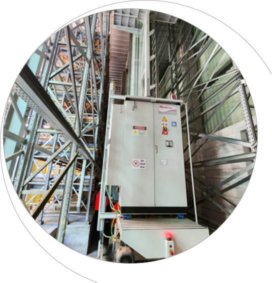 A Cassioli apresentou uma solução customizada de armazém automático, em que as unidades de cargas são movimentadas por meio de transelevadores que deslizam sobre trilhos, com estrutura de coluna dupla em um layout reduzido. A grande dimensão dos paletes e a área limitada disponível levaram a Cassioli a desenvolver o projeto para um transelevador de 8 m de altura e 130 metros de comprimento. O projeto começou com a análise de dados estatísticos de fluxo para dimensionar o sistema e a análise de volume para o estudo da unidade de carga ideal afim de acomodar com eficiência os produtos. O palete derivado deste estudo tem dimensões de 2,9m x 1,94m x 0,45m, com peso de 2.500kg. O projeto exigia a ligação com a área de inboard dos produtos e a produção e caracterizada por uma diferença de altura que foi compensada com a instalação do transelevador.