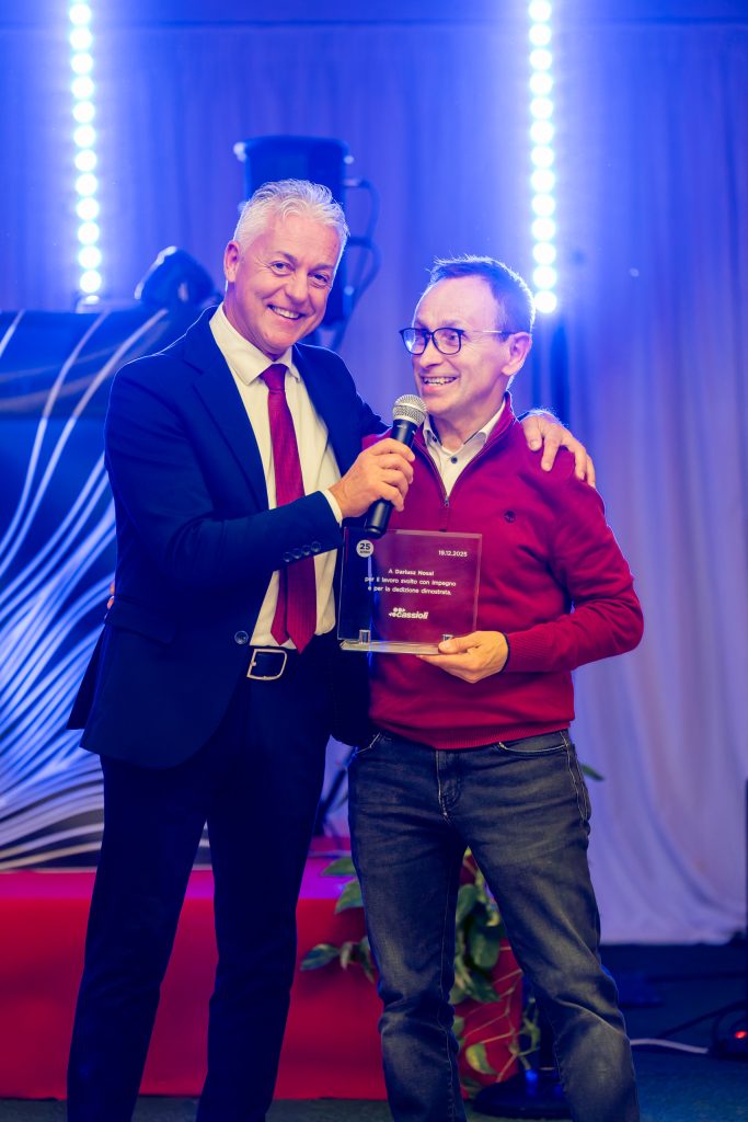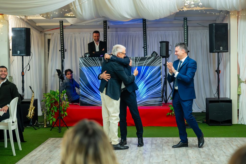 Um momento particularmente emocionante foi dedicado à placa especial para Paolo Cassioli, entregue como símbolo de gratidão e continuidade dos valores da empresa.